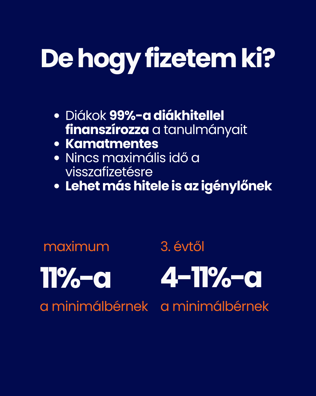- a teljes képzés diákhitelből finanszírozható (a diákok 98%-a így finanszírozza a képzést)